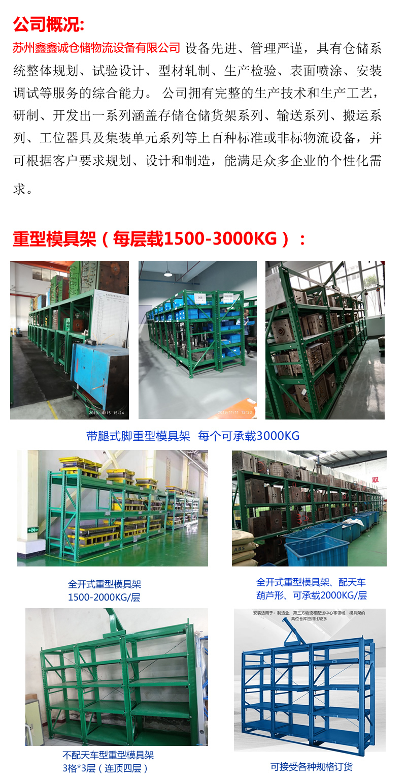 嘉兴鑫鑫诚仓储物流设备有限公司是一家专业生产仓储物流设备、工位器具的公司,产品包括:重型货架、模具架、阁楼平台货架、悬臂货架、钢平台、拆装货架、隔离网片、流利货架、中型货架、贯通货架、工作台、巧固架以及非标货架定制等,作为国内专业的物流设备供应商之一,我们拥有高素质的管理、技术人员,稳定的员工群体,精良的数控设备,良好的技术,完善及时的售后服务。保证了企业的稳定发展,让我们的产品品质得到保障,也让我们的产品更加具有专业化、合理化、人性化、系统化,确保了我们在行业内的位置。